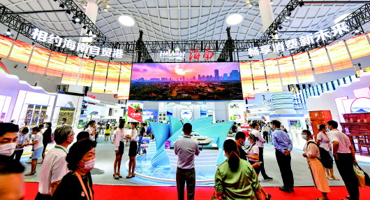 5月7日,参观者在海南国际会展中心各省市自治区展区海南馆观看展览。