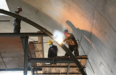 4月18日,古交汾河火山二桥最后一段钢拱吊装焊接完成。至此,该桥主体工程完工,“西山晓月”雏形显现,预计6月份可竣工通车。