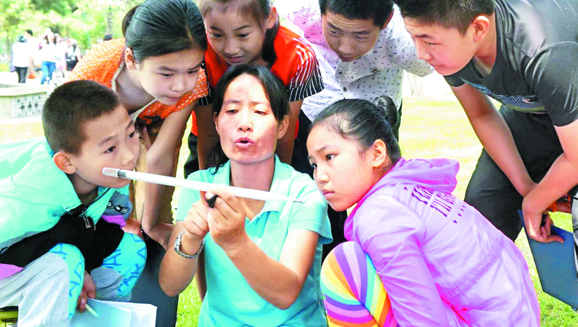 范秀平带领孩子们对地表温度进行监测 ■ 图片由受访者提供