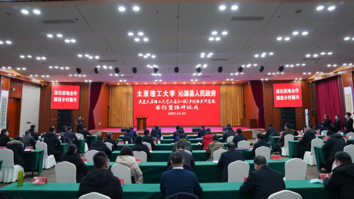 百年老校助推乡村振兴,校地合作共唱发展大戏。1月31日,太原理工大学与长治市沁源县人民政府共建的太岳(沁源)乡村振兴研究院在沁源签约揭牌。这是太原理工大学签署的首个县域全方位合作协议。研究院将围绕开展乡村振兴战略研究并搭建合作共享信息平台,进行决策咨询指导与乡村振兴项目评价服务,推进乡村人才队伍建设,定期开展学术交流研讨推动产业科技攻关和成果转化,建立乡村振兴产业联盟并定期举办联盟国际论坛等五项内容进行建设。沁源县委书记金所军,县委副书记、县长徐计连等县领导,各乡镇党委书记、县直相关单位负责人、相关企业负责人;校党委书记郑强,校党委常委、副校长吴斗庆、冯国瑞,相关学院、部门(单位)负责人等参加了签约仪式。